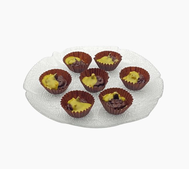 Ingrediente: ciocolata neagra, frisca naturala, unt, fistic, migdale, caise uscate