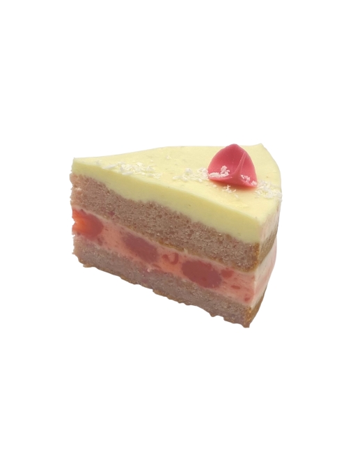Ingrediente: blat vegan cu capsuni (faina de grau, zahar, lapte de cocos, capsuni), crema {lapte cocos, crema de vanilie( sirop de glucoza, zahar, amidon modificat, grasime vegetala rafinata de palmier, stabilizator: celuloza, conservant: sorbat de potasiu; acidifiant: gluconodeltalactona, corector de aciditate: sulfat de calciu, aroma, emulsifiant: polisorbat 60), crema vegetala [ulei total hidrogenat din samburi de palmier, zahar, stabilizator (sorbitoli, hidrozipropilmetilceluloza, caragenan, carboximetilceluloza sodica, guma Tara, guma Gellan, emulsifiant (polisorbat 60)monostearat de sorbitan, esteri ai acizilor mono si diacetiltartic cu mono si digliceride ale acizilor grasi, stearoli-2- lactifilat de sodiu, lecitina de soia, aroma, regulator de aciditate (fosfati de sodiu, citrati de sodiu), sare, colorant (caroteni din plante)];