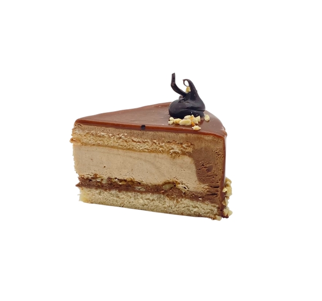 Pentru iubitorii de nuci cu ciocolata, aceasta este solutia! Foi cu migdale si nuca, mousse de ciocolata cu lapte, insert de alune si nuci caramelizate. Bogatia toamnei si aromele ei, adunate intr-un tort!